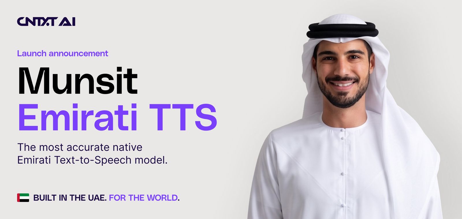Abu Dhabi, UAE – April 2026: CNTXT AI today announced the launch of Munsit Emirati TTS, a text to speech model designed to generate real time, human-like Emirati Arabic for enterprise and consumer applications. The release comes as voice technology continues to evolve rapidly worldwide, with recent launches from companies such as Google, OpenAI, and ElevenLabs pushing improvements in how AI generated speech sounds and performs. Yet despite this progress, many systems still struggle to reflect how language is actually spoken across regions.